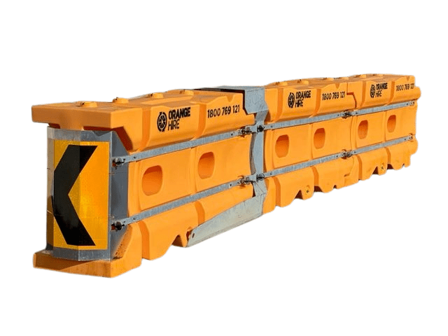 Orange Hire’s Absorb 350 Barrier End Treatment Hire – the Absorb 350 is a water filled non-directive, gating crash cushion that is approved to scale crash testing NCHRP Test Level 2 (70km/h) and Test Level 3 (100km/h).
